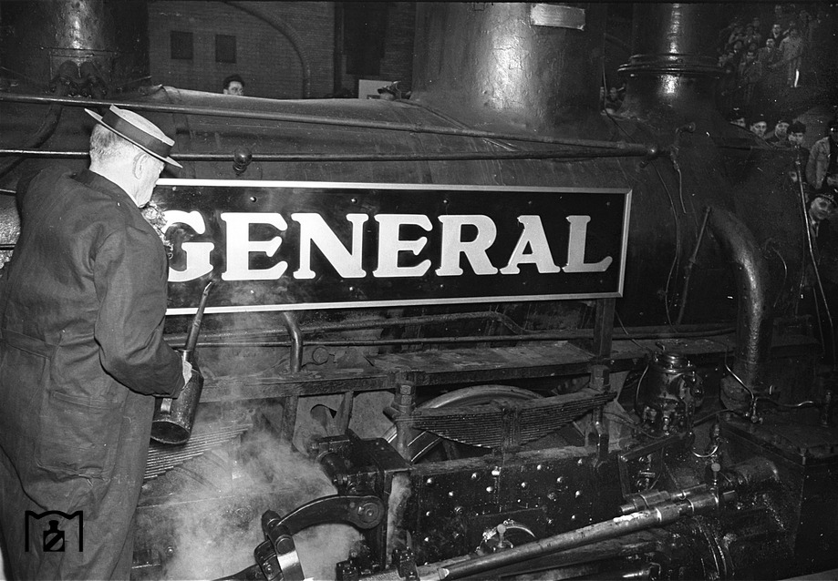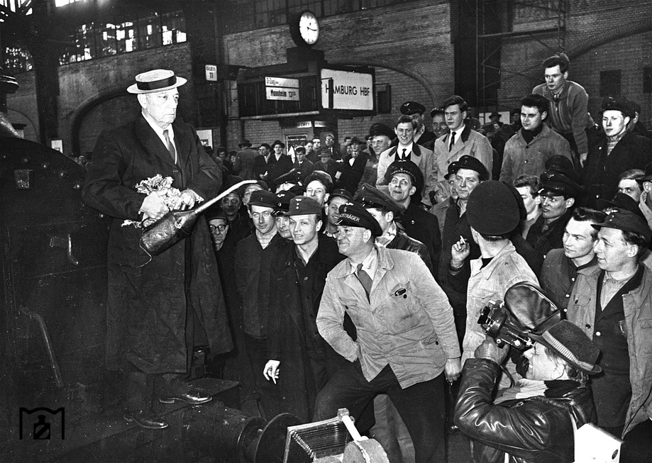 Buster Keaton drives a steam locomotive into the Munich Central train station during German Mardi Gras, while the Bundeswehr Military Band plays a medley of songs from the Old South. Apart from the delightful incongruity which Keaton likely enjoyed, there is something elegiac and very satisfying seeing Buster here, on the threshold of having his classic films rediscovered throughout the world. No filmed footage seems to have been captured during his 1965 Venice ovation, but these brief scenes from February 1962 almost make up for that loss: